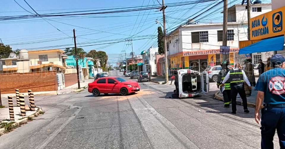 Camioneta volcada en una calle de Ciudad Madero