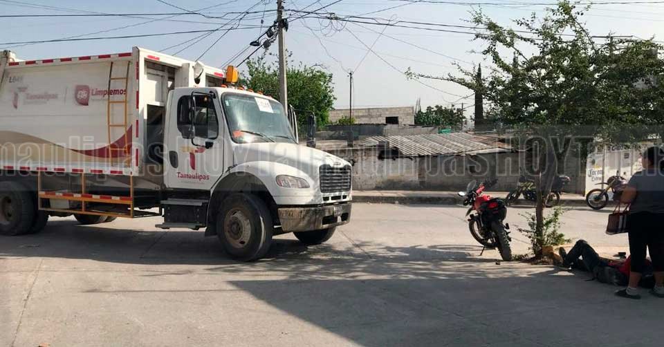 Camión de la basura en el que un joven chocó en Ciudad Victoria