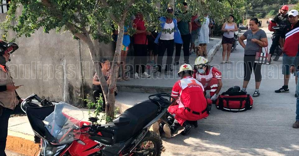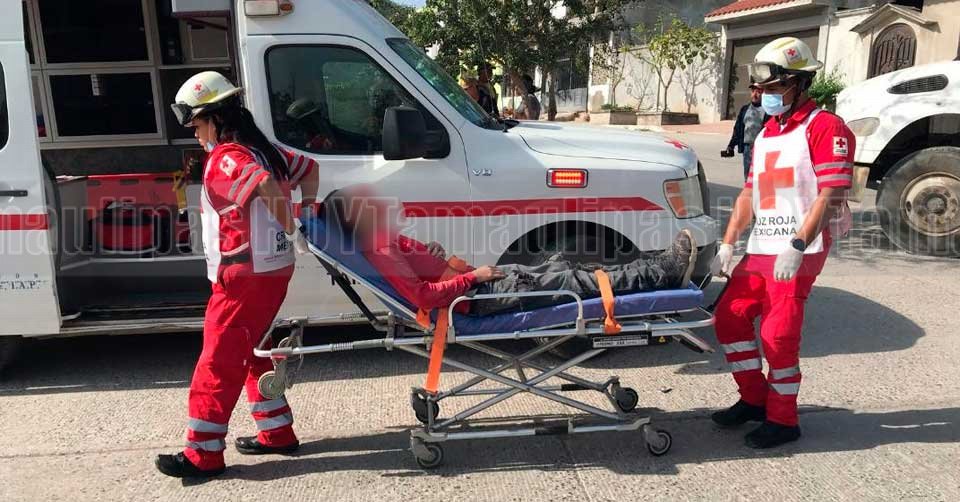 Paramédicos de la Cruz Roja trasladando a un joven luego de chocar en Ciudad Victoria
