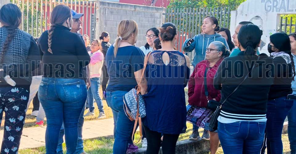 Madres de familia al exterior de la Escuela Primaria 'General Álvaro Obregón' en el Ejido El Olivo en Ciudad Victoria