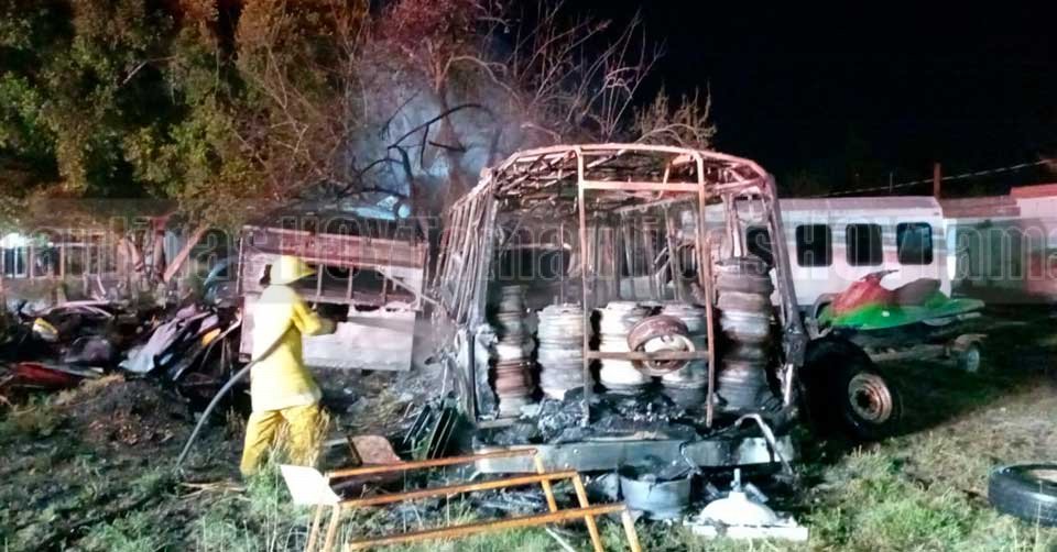 La 'pesera' quedó convertida a chatarra tras incendiarse en un predio en el que estaba abandonada en la colonia Bella Vista Sur en San Fernando