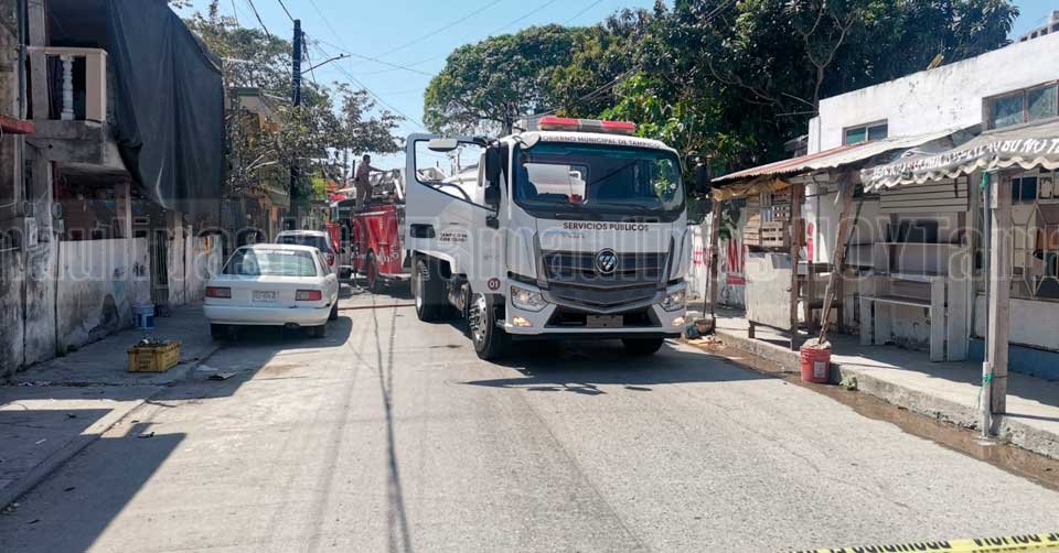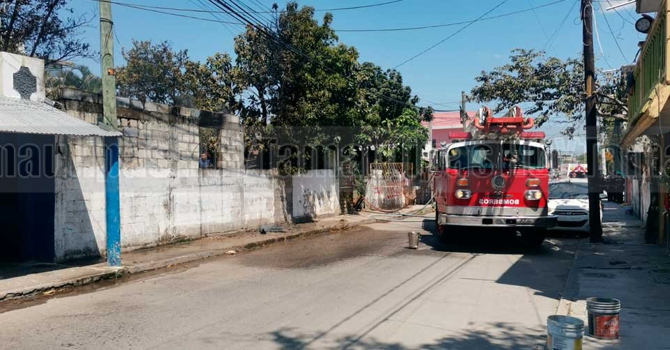 Bomberos en el inmueble que se incendió en la Venustiano Carranza, entre Abasolo y Vicente Guerrero de la colonia Morelos