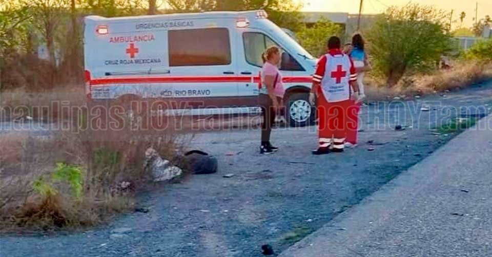 Paramédicos dialogan con una mujer con su niña lesionada en accidente en la carretera libre a Matamoros