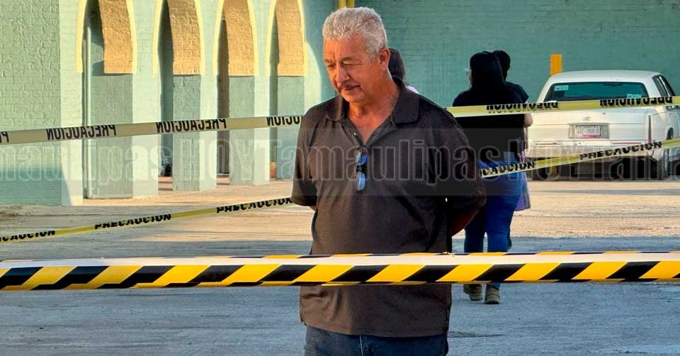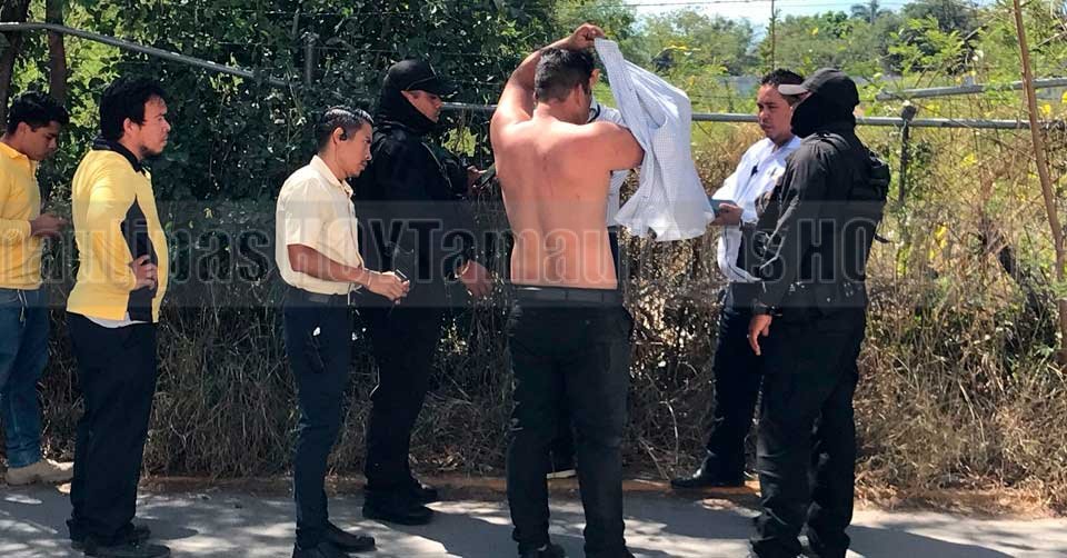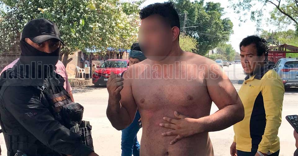 Momento en el que el sujeto es detenido por agentes de la Guardia Estatal en el exterior de Coppel Adelitas en Ciudad Victoria