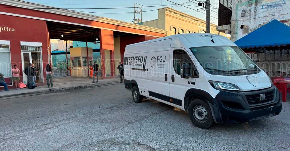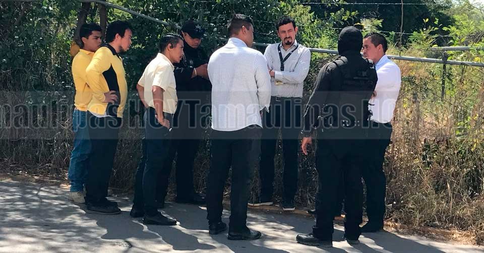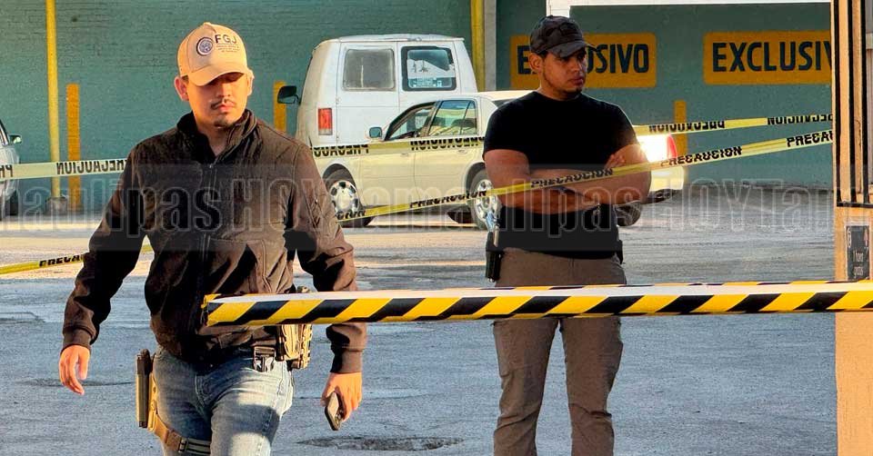 Personal de la Fiscalía General de Justicia de Tamaulipas en el sitio donde el hombre fue encontrado muerto en un estacionamiento en Matamoros