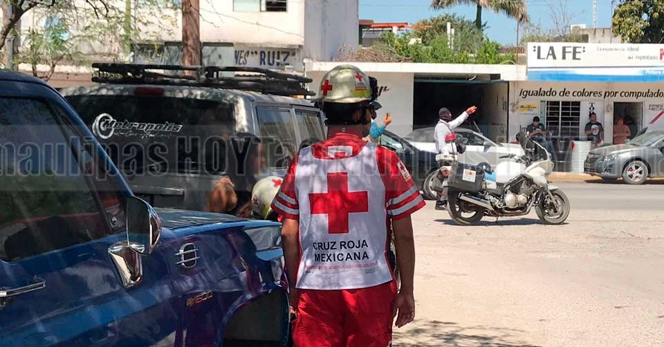 Momento en el que los elementos de la Cruz Roja y Bomberos atienden el siniestro en la colonia Victoria; cerca agentes de la Dirección de Tránsito y Vialidad