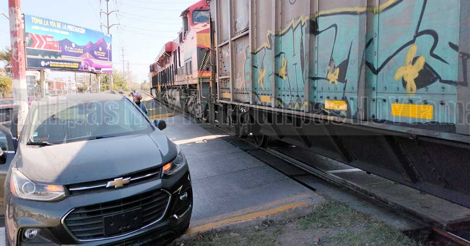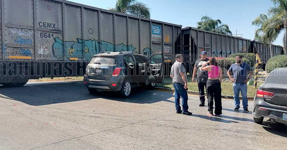 La camioneta a un lado de uno de los vagones del tren en Madero