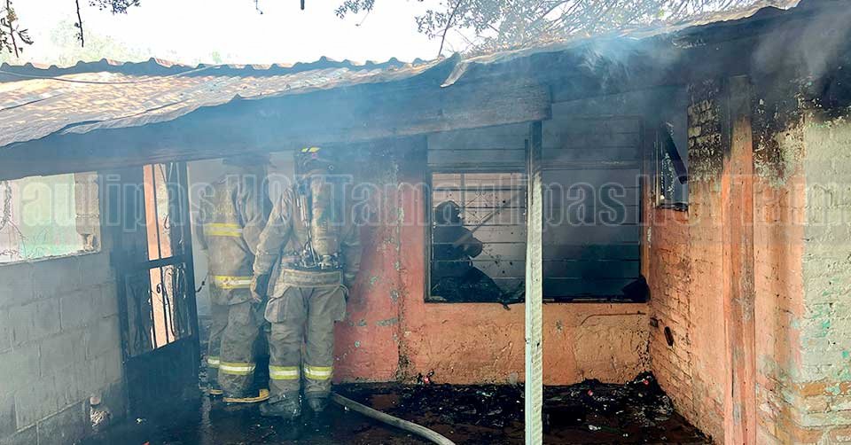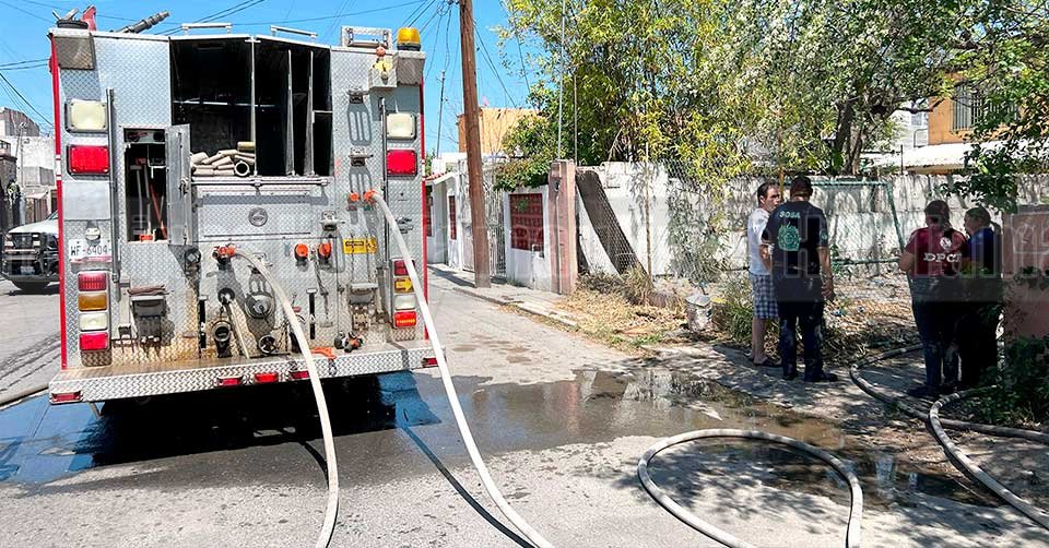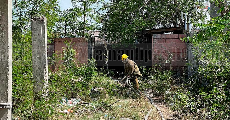 Bomberos en la vivienda que se incendió en Nuevo Laredo