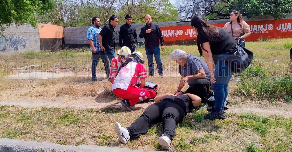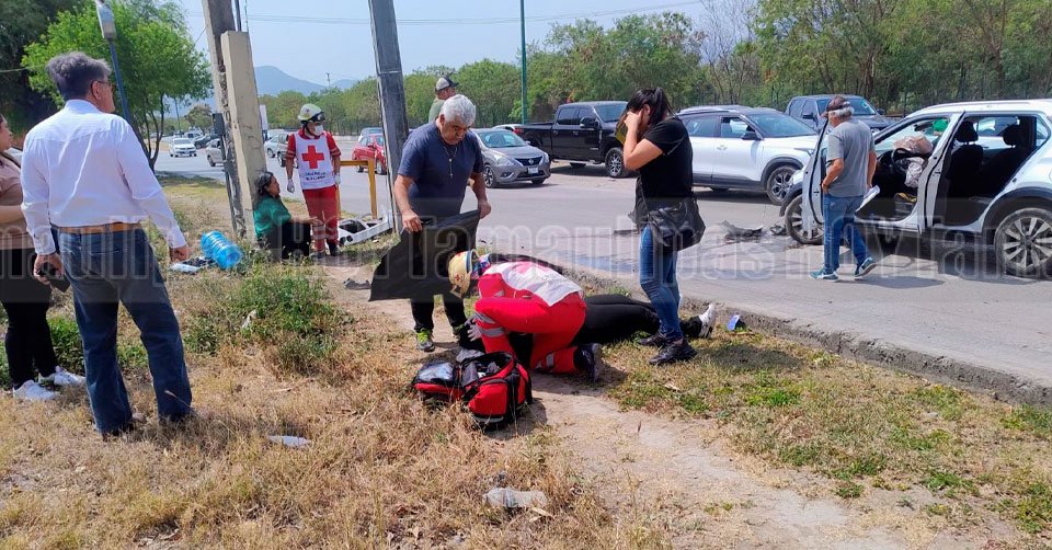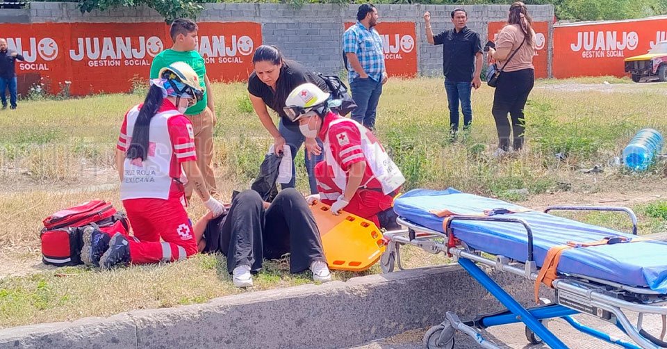 Paramédicos de la Cruz Roja brindándole los primeros auxilios a una de las personas lesionadas en el accidente del Eje Vial Lázaro Cárdenas y calle Coahuila en Ciudad Victoria