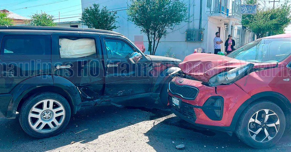 El accidente, que no dejó lesionados, ocurrió en el cruce de las calles Francisco Villa y Álvaro Obregón en la colonia Concordia en Nuevo Laredo, hasta donde llegaron agentes de Tránsito