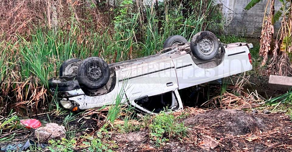 La camioneta de color blanco quedó volcada a un costado de la carretera Mante- Tampico, a la altura del conocido y famoso platillo volador
