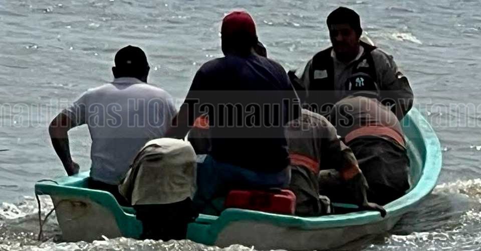 Trabajadores de la Comapa de Altamira abordo de una lancha para realizar labores en la Laguna del Champayán, pero sin contar con las medidas mínimas