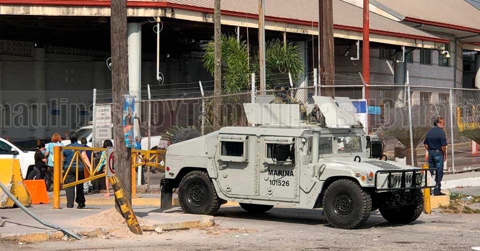 Unidad de la Secretaría de la Defensa Nacional (Defensa) en el Puente Nuevo que comunican Matamoros, Tamaulipas con Brownsville, Texas