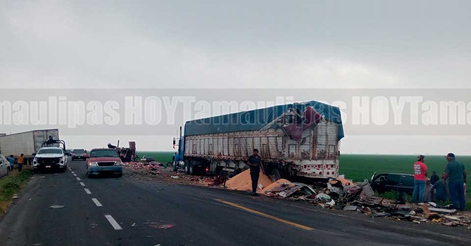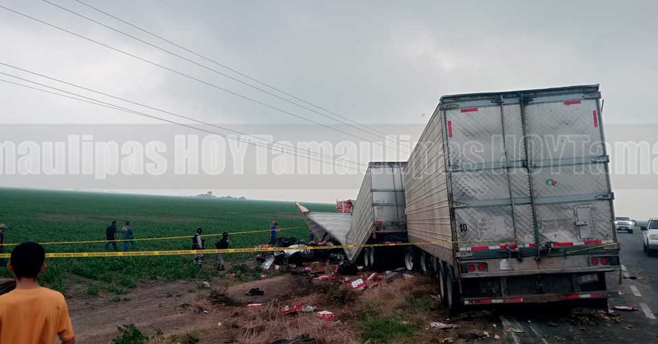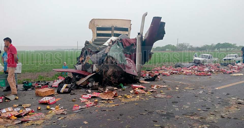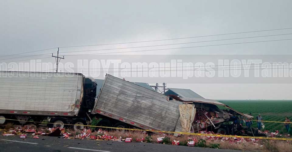Los dos tráileres quedaron destruidos en la carretera Victoria-Matamoros, antes de llegar al entronque de González Villarreal en San Fernando.