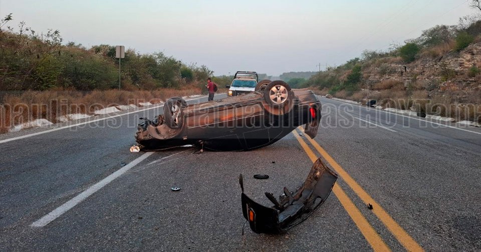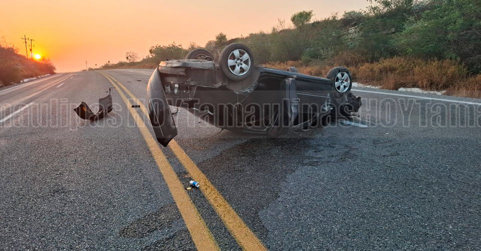 Automóvil volcado en la Carretera Federal 101 Victoria-Matamoros