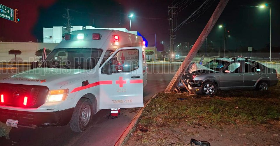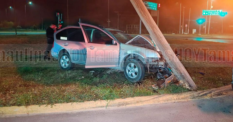 Automóvil impactado contra un poste en Ciudad Victoria