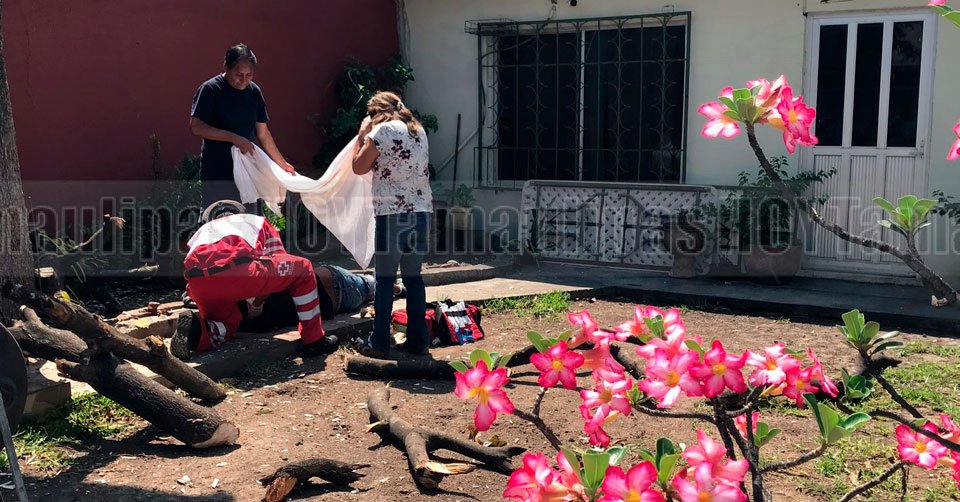 Paramédicos de la Cruz Roja auxiliando a una persona lesionada luego de caer de un árbol en Ciudad Victoria