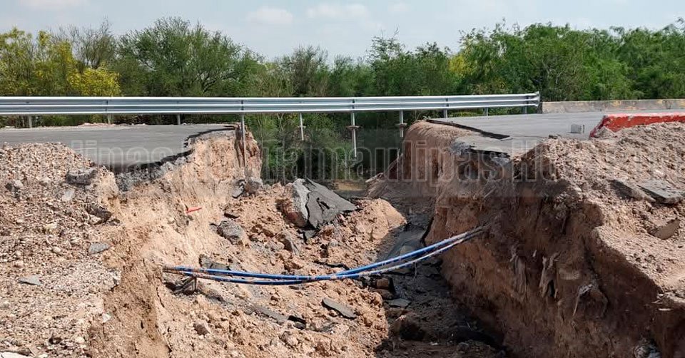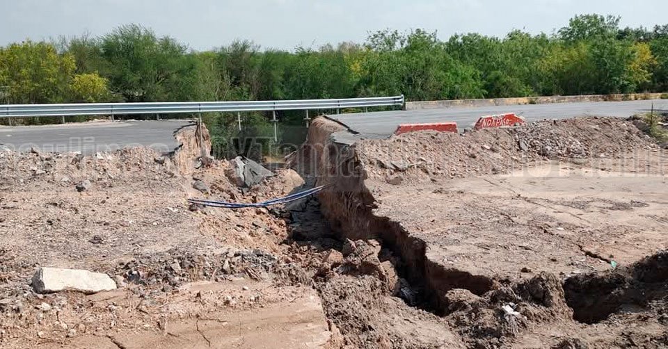 Tramo del bordo de contención del río Bravo en Reynosa que se desgajó