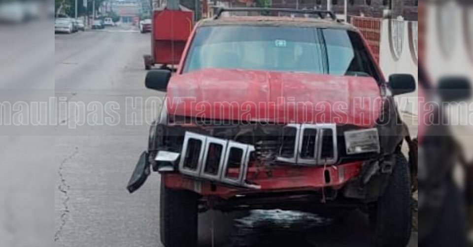Camioneta con daños en la parte frontal luego de chocar en Ciudad Madero