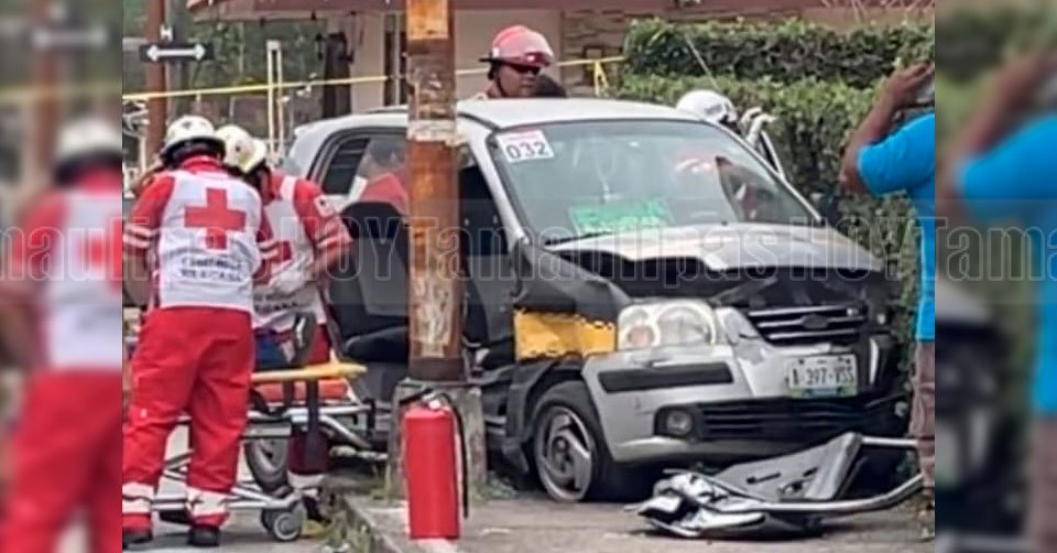 Paramédicos de la Cruz Roja auxiliando a una persona lesionada luego de ser chocada en Ciudad Madero