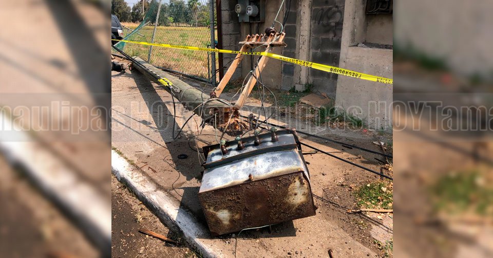 Poste derribado por un conductor en Tampico