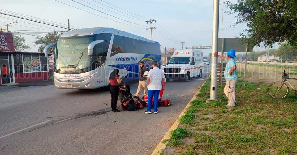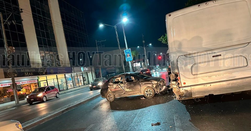 El automóvil Hyundai Grand I10 color gris se impactó por un costado del autobús que cubría la ruta Tampico-Tancol rumbo al norte de Tampico