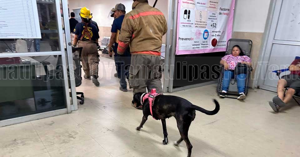 Personal de Protección Civil y Bomberos ingresando a las instalaciones del IMSS de Matamoros donde un elevador se desplomó