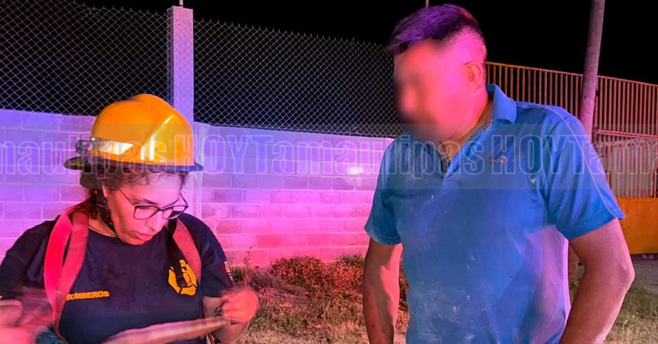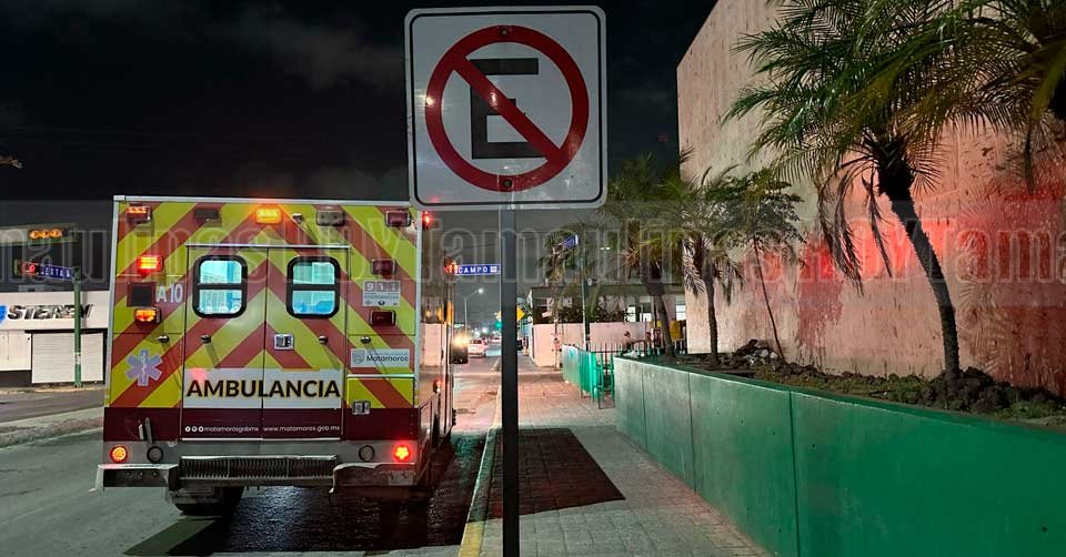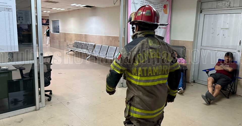 Unidad de Protección Civil y Bomberos al exterior de las instalaciones del IMSS de Matamoros donde un elevador se desplomó