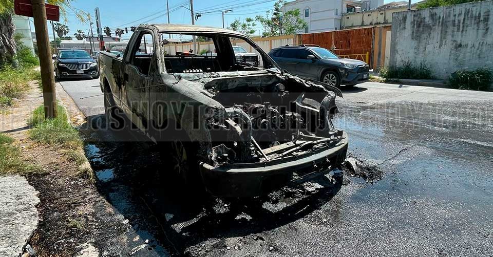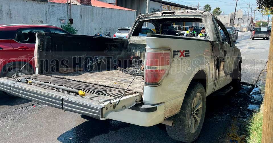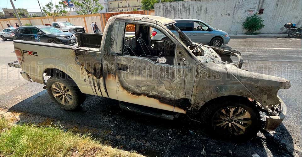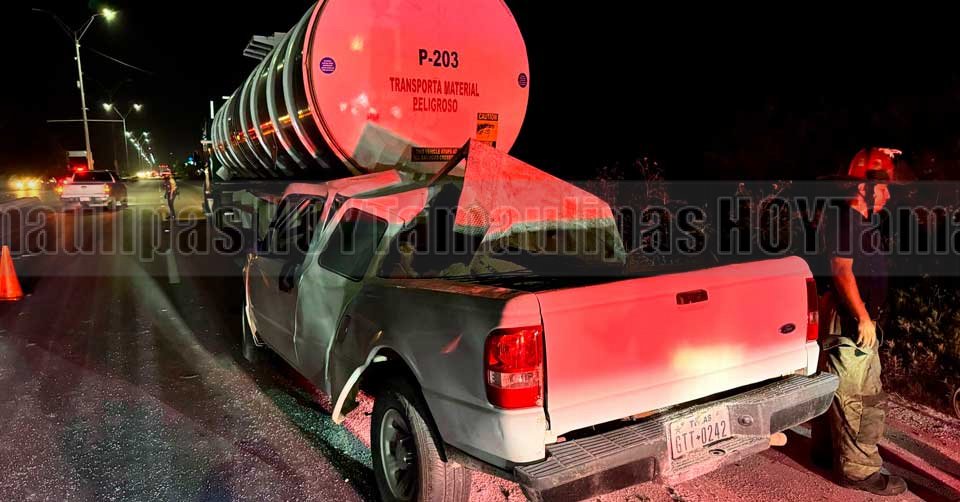 La camioneta Ford Ranger quedó destruida tras ser impactada contra una pipa en Matamoros