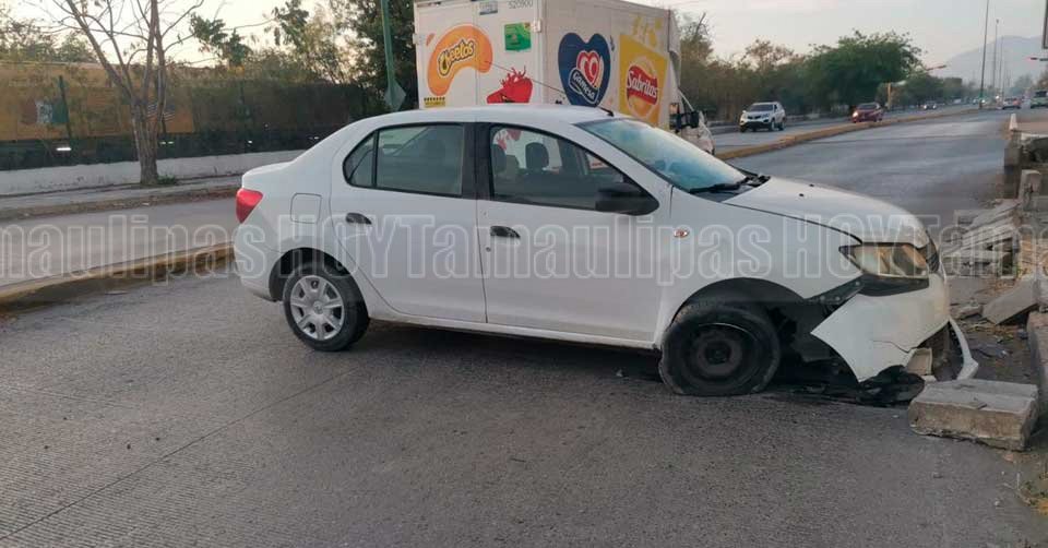 El automóvil Renault tipo Logan quedó atravesado en los carriles de circulación del Eje Vial Lázaro Cárdenas en Victoria, obstruyendo la vialidad