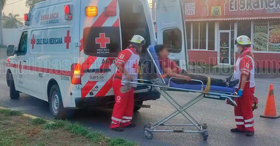 Momento en el que el ciclista es subido a la ambulancia de la Cruz Roja tras el accidente registrado sobre la Avenida José Sulaimán Chagnón en Victoria