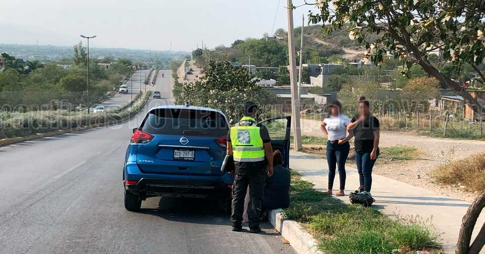 Socorristas del Centro Regulador de Urgencias Médicas dialogando con una mujeres, al parecer iban en la camioneta con la que el motociclista se estrelló en Ciudad Victoria