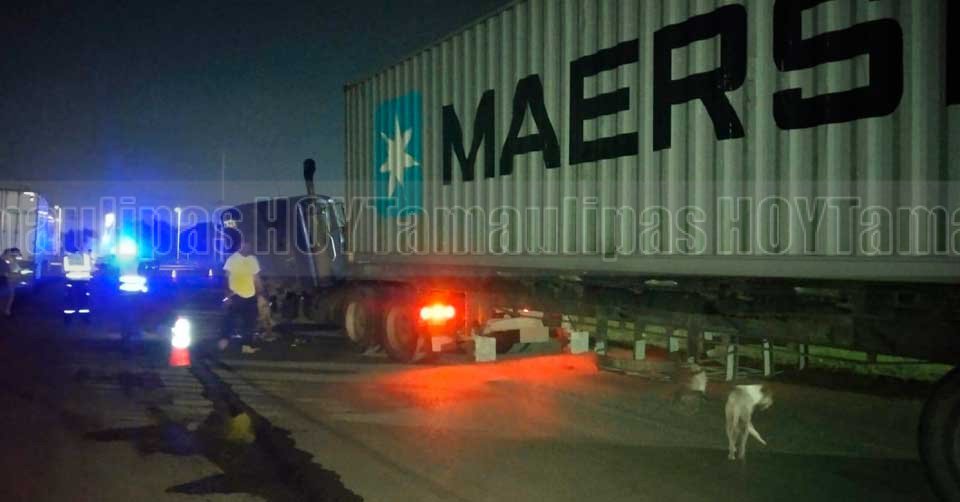 Tráiler Kenworth color azul modelo 1984 que era tripulado por el joven Ángel Gabriel N de 18 años en Altamira