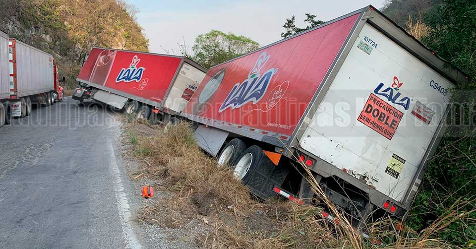 Camión de Lala a punto de caer a un barranco en la Mante-Antiguo Morelos