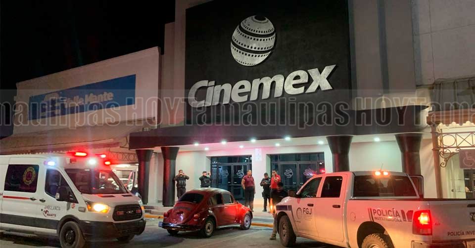 Agentes de la Guardia Estatal y socorristas al exterior del Cinemex en el Mante donde un menor de edad fue olvidado por su tío