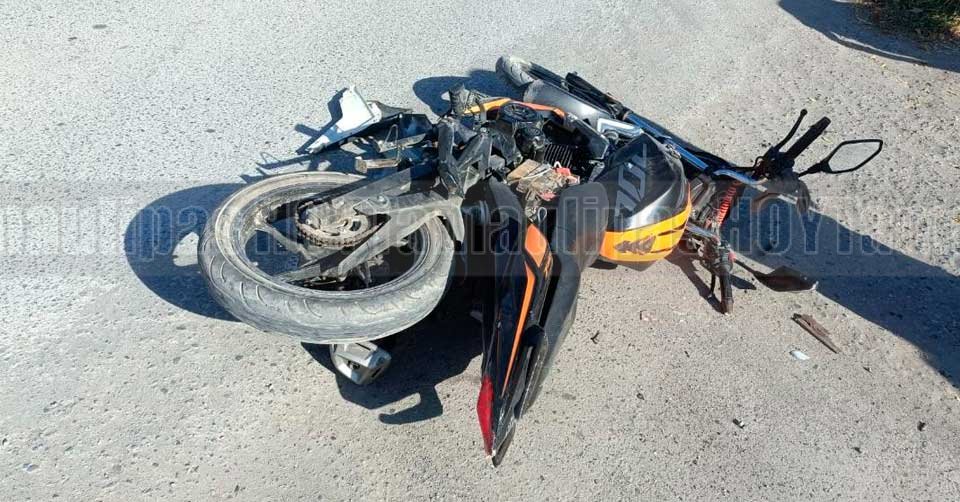 Así terminó la motociclista luego de que su conductor se impactara contra una camioneta en la calle Republica de México con Mariano G del Fraccionamiento Sahop en Ciudad Victoria