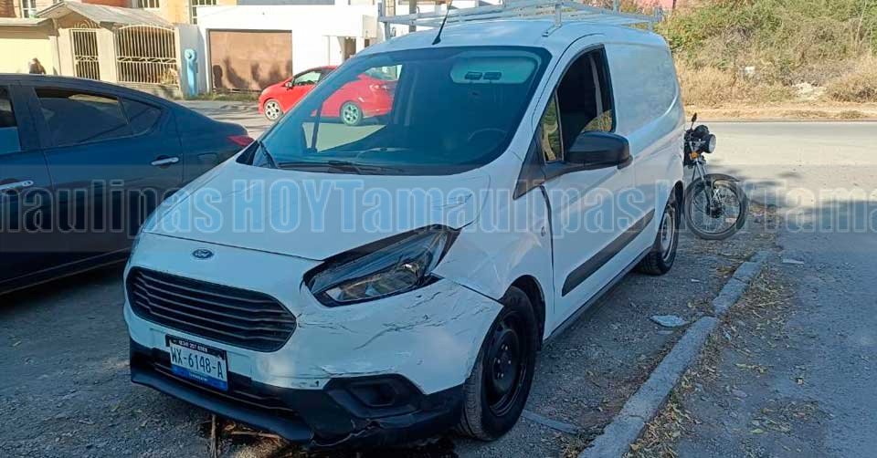 Esta es la camioneta en la que se estrelló un motociclista en la calle Republica de México con Mariano G del Fraccionamiento Sahop en Ciudad Victoria