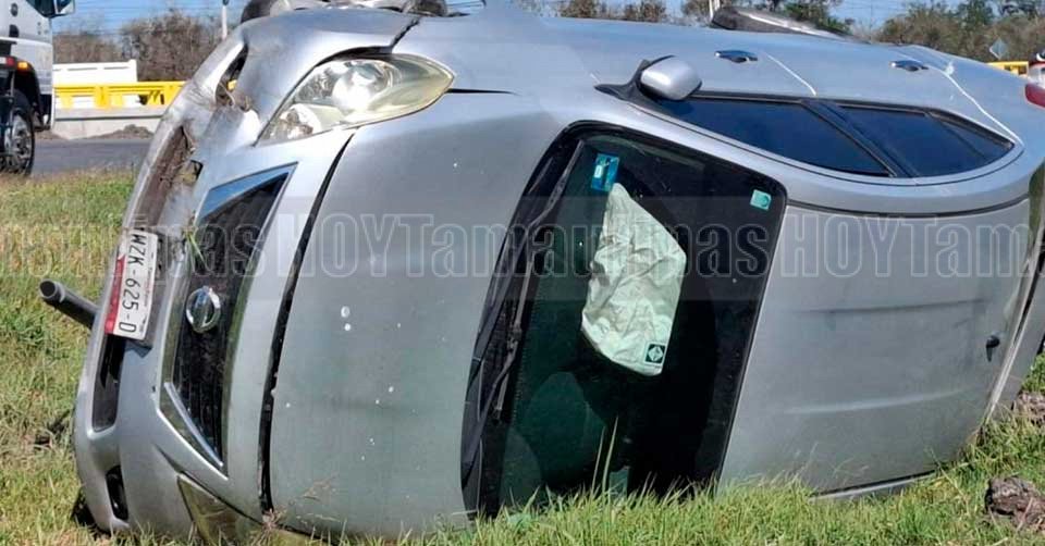 El automvil Nissan de color gris qued volcado a un costado del llamado "puente roto" en Altamira