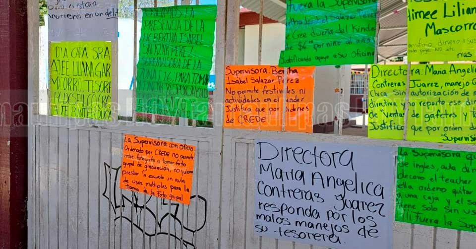 Cartulinas colocadas en protesta al exterior de un Kinder en Altamira