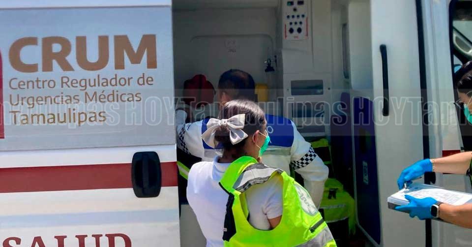 Técnicos en urgencias médicas del Centro Regulador atendiendo a un joven luego de haber chocado en Ciudad Victoria
