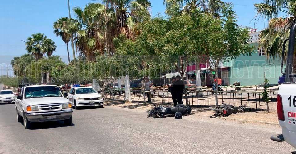 Motocicletas tiradas en el pavimento mientras un tránsito toma datos luego de haber chocado en Ciudad Victoria