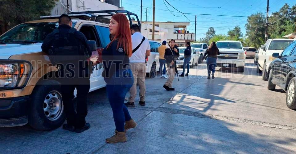 Agentes de la Fiscalía General de Justicia de Tamaulipas en el sitio donde ocurrió un asalto en Matamoros