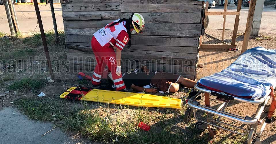 Paramédicos atienden al joven tras caer de una moto en Ciudad Victoria