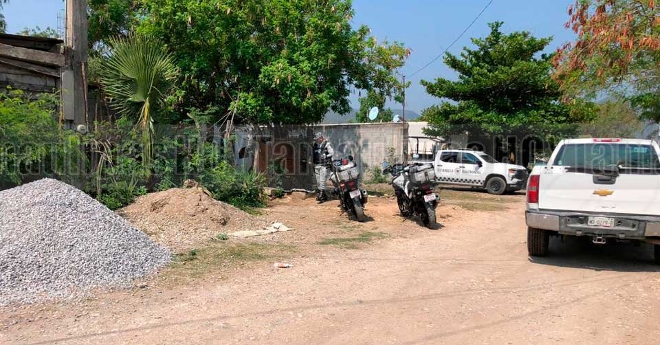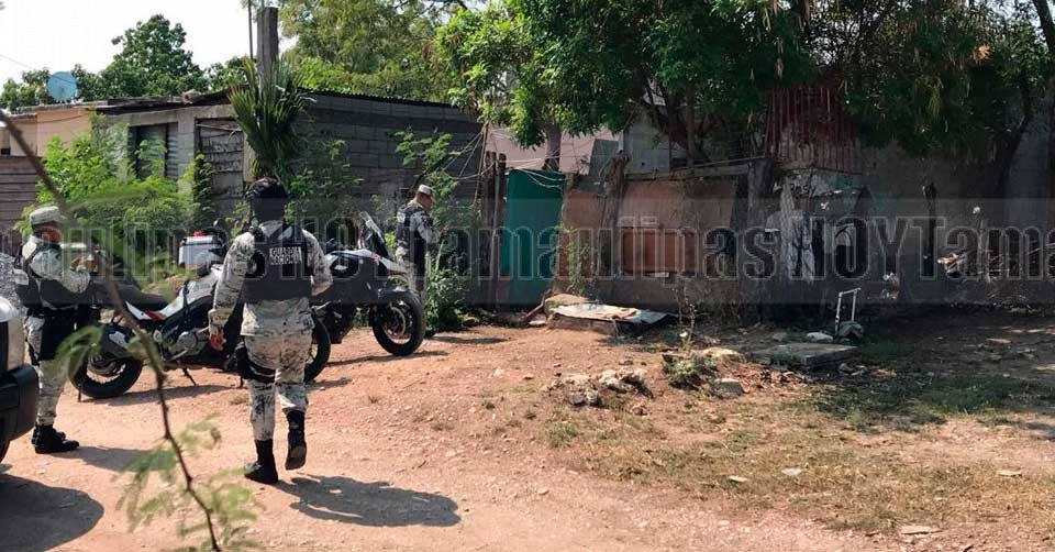 Agentes de la Guardia Nacional y de la Fiscalía en el exterior del domicilio ubicado en la calle Vamos Tamaulipas, manzana 2, lote 57 de la colonia Vamos Tamaulipas