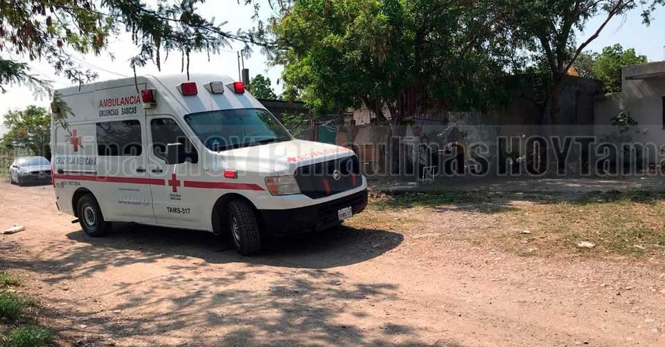 Ambulancia de la Cruz Roja en el exterior del domicilio ubicado en la calle Vamos Tamaulipas, manzana 2, lote 57 de la colonia Vamos Tamaulipas