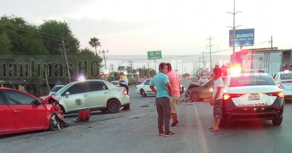 El automóvil Nissan Sentra verde terminó con el frente destrozado tras el choque con un Chevrolet Cruze rojo en la carretera a San Fernando