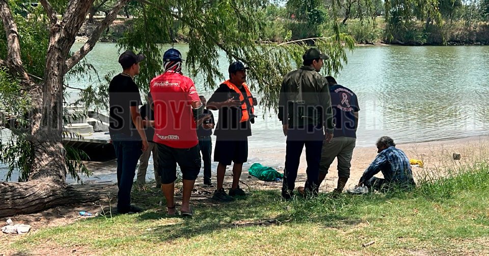 El cuerpo del menor fue arrastrado a la orilla y cubierto con una sábana de color verde en el Centro Recreativo La Playita en Reynosa