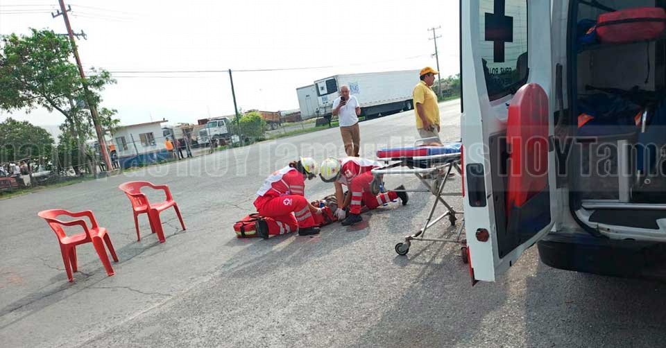 Paramédicos de la Cruz Roja brindándole los primeros auxilios al adulto mayor que fue atropellado por la rotonda del Cuerudo en Ciudad Victoria