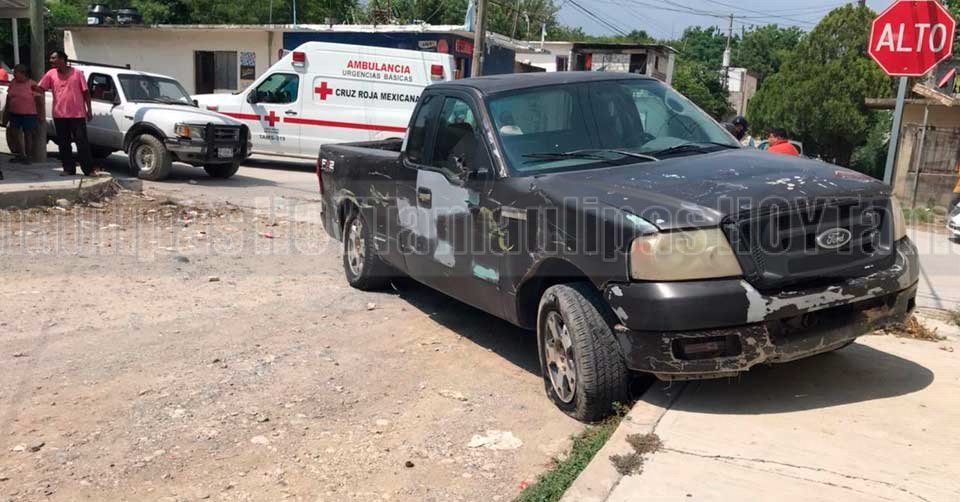 La camioneta terminó trepada sobre la banqueta en la calle Palma de la colonia Moderna en Ciudad Victoria