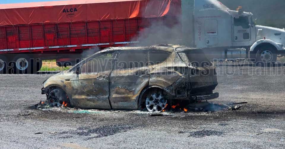 Camioneta Ford Escape luego de arden en llama en la carretera ZaragozaVictoria